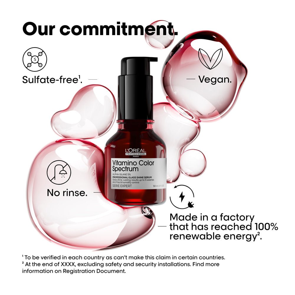 سيروم حاصل على براءة اختراع للشعر المصبوغ، يمنحه لمعانًا فوريًا ونتائج تدوم حتى ١٠ غسلات. مضاد للتجعد حتى ٧٢ ساعة، مضاد للرطوبة، مضاد للبهتان.